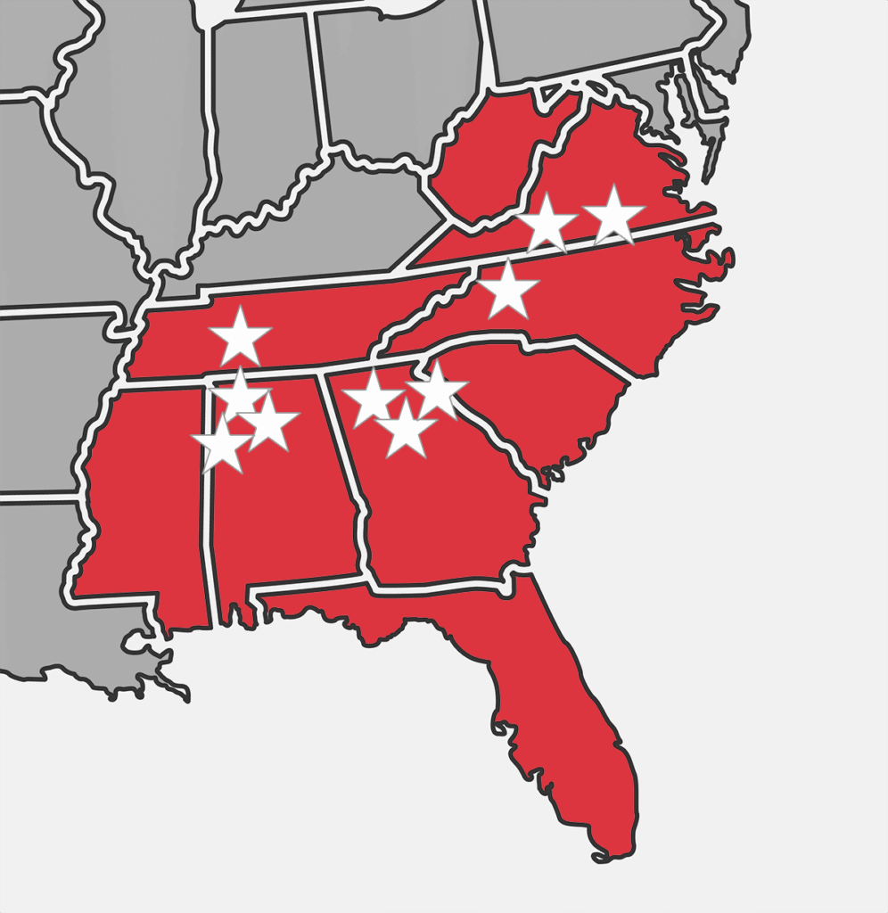 • Alabama, Mississippi, Florida Panhandle, Tennessee